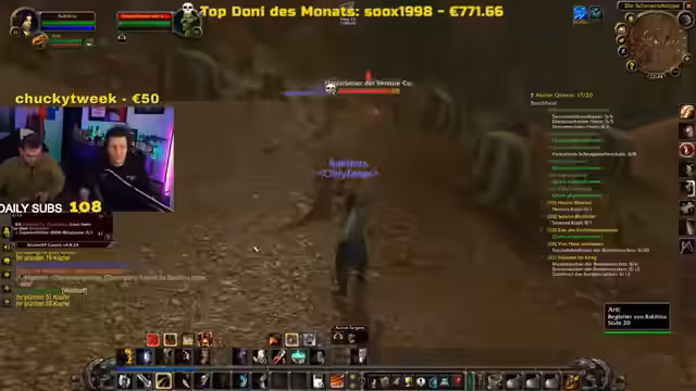 03:59:47Der Streamer spielt 'World of Warcraft Hardcore', einen Modus, in dem der Charakter bei einmaligem Tod dauerhaft gelöscht wird. Er beschreibt die Gefahren, insbesondere durch starke Gegner wie Feuerbälle, die sofort zum Tod führen können. Das Leveln in diesem klassischen Modus ist extrem schwierig und zeitaufwendig, da die Spielmechaniken der letzten 20 Jahre nicht überarbeitet wurden. Er betont, dass selbst Internetprobleme zum permanenten Verlust des Charakters führen könnten. Er äußert den Wunsch, durch Streaming finanziell ausgesorgt zu haben, um nie wieder Geld verdienen zu müssen und sein Leben lang das tun zu können, was er liebt. Er ist sich jedoch bewusst, dass Erfolg auch mit negativen Aspekten wie ständiger Beurteilung und Kritik einhergeht, was er als anstrengend empfindet.