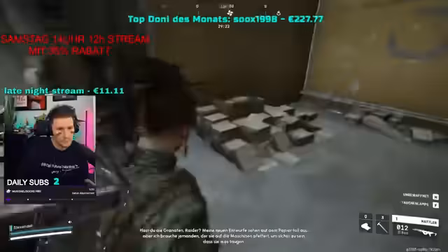 00:58:50Während der Gaming-Session interagiert der Streamer mit anderen Spielern, wobei er versucht, auf entspannter Basis zu bleiben und keine Spannungen aufkommen zu lassen. Er erwähnt, dass er seinen Realnamen nicht preisgeben möchte, um unangenehme Situationen zu vermeiden. Der Stream endet schließlich mit dem Versprechen, dass er am nächsten Tag wieder für einen 12-Stunden-Stream live gehen wird.