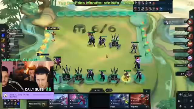 01:08:54Der Streamer führt einen Kommentar im Spiel Teamfight Tactics (TFT). Es werden verschiedene Champion-Kombinationen und Fähigkeiten besprochen, wie z.B. Vanguard mit Slayers oder Syndicate mit Rapid Fire auf 'Sachse'. Er erwähnt auch seine Strategien, wie das Anhäufen von Gegenständen, um eine perfekte Komposition zu erreichen und den Kampf gegen die Gegner zu meistern.