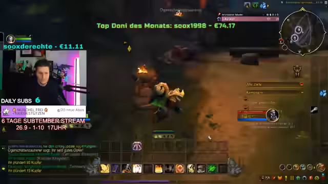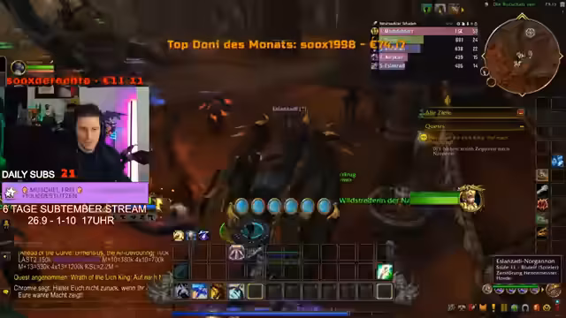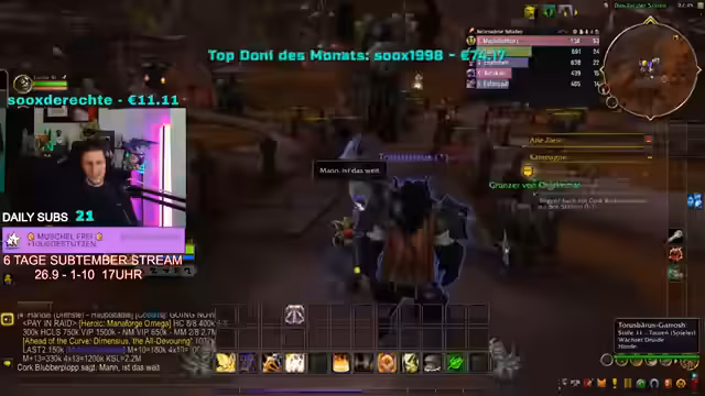 04:30:01Es wird darüber diskutiert, wie Steisen in World of Warcraft unterstützt werden kann. Steisen benötigt Hilfe bei Quests und der Charakterentwicklung. Es wird geklärt, dass Steisen die Vollversion des Spiels besitzt, aber zusätzliche Spielzeit benötigt, um über Level 20 hinaus zu spielen und Gold von anderen Spielern zu erhalten. Der Streamer bietet an, Steisen im Spiel zu begleiten und ihm zu helfen, Gold zu verdienen, anstatt ihm Gold zu schenken, damit er das Spiel vollständig erleben kann. Es wird erklärt, dass Gold im Spiel das Spielerlebnis vereinfacht, aber nicht unbedingt verbessert ('Quality of Life'). Steisen wird gezeigt, wie er eine Zeitlinie auswählt und Quests annimmt. Pascal wird gebeten, Steisen zu helfen, auf dem Mount zu reiten, damit er mitgenommen werden kann. Es wird festgestellt, dass Steisen bereits die Spielversion besitzt und lediglich Spielzeit benötigt, um alle Funktionen nutzen zu können.