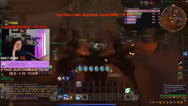 03:13:23Die Langzeitvision für die Gilde wird skizziert. Das Ziel ist es, entspannt zu leveln und in Zukunft gemeinsam Raids zu absolvieren, insbesondere Normal- und Heroic-Schwierigkeitsgrade. Es wird klar gestellt, dass dies keiner großen zeitlichen Verpflichtung oder Jobverlust bedarf. Der Fokus liegt auf einem entspannten Gildenalltag. Als größte Herausforderung in Raids wird die fehlende Kommunikation identifiziert, die durch den Einsatz von TeamSpeak als Lösung angesehen wird. Die Gemeinschaft und die Kommunikation werden als der Schlüssel zum Erfolg in zukünftigen Aktivitäten gesehen.