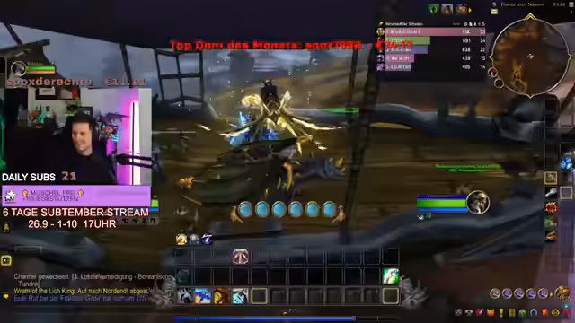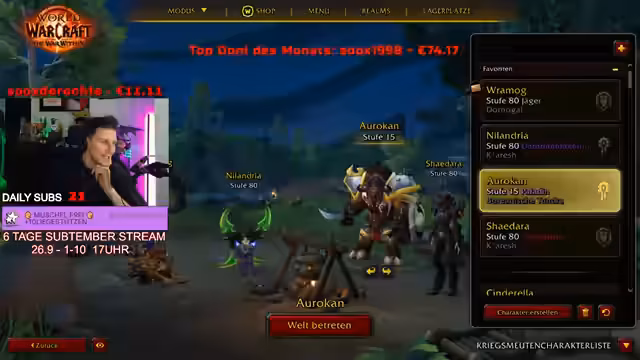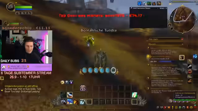 04:30:45Der Streamer hilft einem neuen Spieler, Steisen, bei den ersten Schritten in World of Warcraft. Er erklärt, wie Quests abgebrochen und wieder angenommen werden können und wie man den grünen Pfeil nutzt, um als Mount zu reiten. Es wird die Spielfreiheit thematisiert: Das Gold-Abonnement ermögliche zwar das Fliegen, sei aber kein Vorteil, sondern biete nur mehr Komfort. Spieler ohne dieses Abo könnten dennoch weitermachen und alles miterleben, würden jedoch mehr Händlerbesuche benötigen.