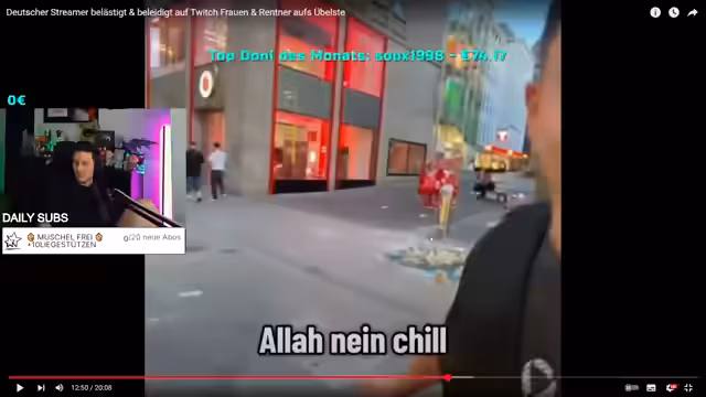 00:14:20Es wird ein Twitch-Streamer namens Aga Musa thematisiert, der mit 37.000 Followern in der Dortmunder Innenstadt Passanten belästigt, beleidigt und unerlaubt filmt. Sein Content besteht darin, sich als Security zu verkleiden und Leuten Vorschriften zu machen, wobei er Macht ausübt und Demonstranten vertreibt. Er verdient Geld damit, Menschen auf der Straße zu belästigen, wobei die meisten Opfer nicht gefilmt werden wollen. Er geht in Geschäfte, um Verkäufer zu belästigen und bloßzustellen, was in eine ekelhafte Richtung geht. Er legt sich mit einem Typen im Kostüm vor fremden Kindern an, was sein Chat lustig findet. Er beleidigt wahllos Menschen, wirft ihnen Straftaten vor und beleidigt Angestellte, wenn er seinen Willen nicht bekommt. Er geht sogar alte Menschen wahllos an. Er schießt alte Menschen mit Nerf-Guns ab und schießt auf fremde Frauen in der Öffentlichkeit. Er nimmt den Namen Allah in den Mund und geht auf die Schwächeren los. Er ist ein Aushängeschild, das der AfD in die Karten spielt. Er filmt fremde Menschen, die das nicht möchten, und lügt sie an, dass er das Material gelöscht habe. Sobald das Wort Polizei fällt, haut er ab. Er berücksichtigt nicht mal den Wunsch eines Hundebesitzers, den Hund nicht zu streicheln. Er geht Lieferanten auf den Sack und ist sogar auf der Gamescom im Creator-Bereich eingeladen, obwohl er dort fremde Menschen belästigt und beleidigt hat. Er entzieht Leuten die deutsche Sprache für beschissene Outfits und geht nur so vor ihm hin. Er zuckt schon so zusammen. Es ist halt große Worte, aber nichts dahinter.