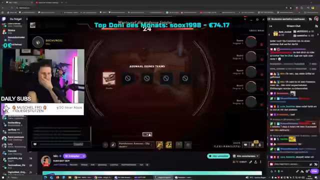 00:58:55Das League of Legends-Spiel beginnt mit einigen Schwierigkeiten, da die Spieler auf die gegnerischen Bewegungen nicht vorbereitet sind und im Jungle überrascht werden. Es kommt zu einem unkoordinierten Spielverlauf, der zu schnellen Toden führt. Gleichzeitig beklagt der Streamer technische Probleme bei Twitch, bei denen man nicht sehen kann, wie viel Geld verdient wurde. Der Fokus liegt auf dem chaotischen Spielverlauf, das den Streamer frustriert und von seinem ursprünglichen Plan abweicht.
