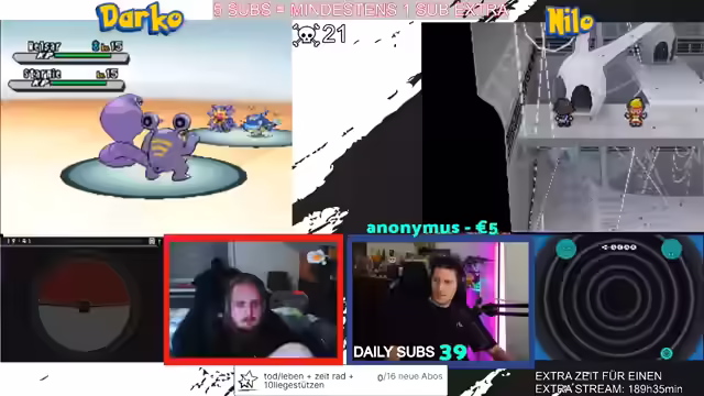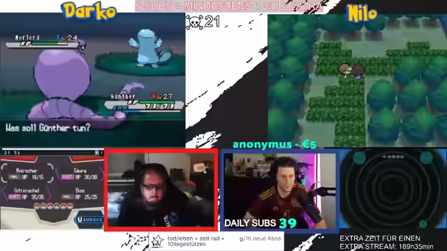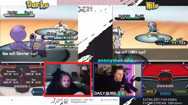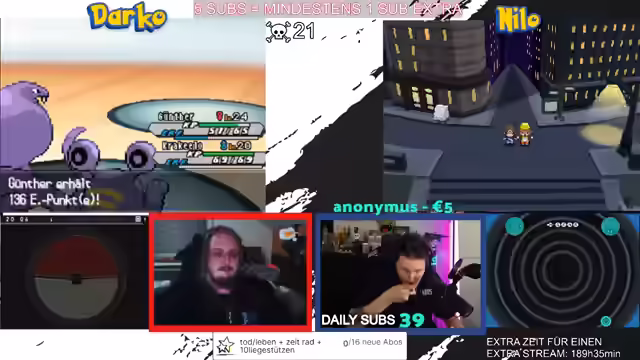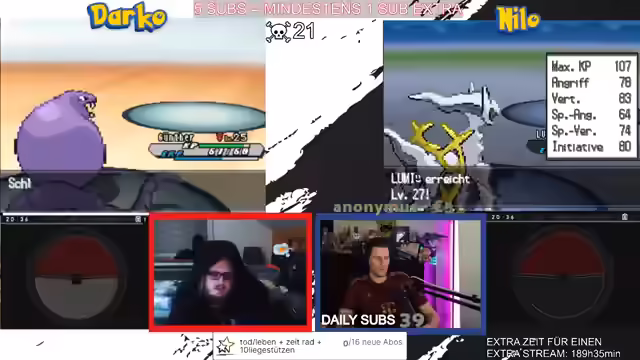 01:48:50Ein Kampf gegen ein extrem starkes Pokémon zwingt zu riskanten Entscheidungen. Ein Wiederbeleber muss eingesetzt werden, was den Verlust einer wertvollen Ressource für ein anderes Pokémon, Darko, bedeutet. Trotz des Verlusts eines Pokémon durch den Kampf, bleibt der Fortschritt erhalten. Die Kämpfe gestalten sich zunehmend schwierig und fordern taktisches Geschick. Es wird überlegt, wie der EP-Teiler funktioniert und festgestellt, dass das Neben-Pokémon mehr Erfahrungspunkte erhält als das Haupt-Pokémon, was zu einem schnelleren Levelaufstieg führt. Dies führt zu einer Diskussion über die Effektivität des EP-Teilers und ob er richtig eingesetzt wird, um alle Pokémon gleichmäßig zu leveln. Die Schwierigkeit, gegen Legendäre und Mystische Pokémon zu kämpfen, wird hervorgehoben, was die Kämpfe unberechenbarer macht.
