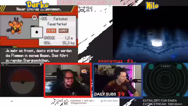 00:12:59Ein großer Applaus wird eingespielt und ein Gast wird begrüßt. Es wird angekündigt, dass Darko im November zu Besuch kommen wird. Es wird eine Anekdote von Darkos gestrigem Auftritt erzählt, bei dem er mit seinem Schaf unterwegs war und "Bretter rausgehauen" hat. Der Streamer betont, dass die Technik wichtiger ist als die Größe des Raumes. Axel wird für seine T2 Subs gedankt und seine Statur humorvoll beschrieben. Der Streamer äußert den Wunsch, auch T2-Subs zu verschenken und spekuliert über die Auswirkungen auf die Anzahl der zusätzlichen Subs. Es wird über Team Blutpenis und die logistischen Vorstellungen von Vargas diskutiert. Vargas wird als hoher Entreprenieur von lyrischer Kunst gelobt. Der Plan, Pokemon zu spielen, wird verworfen, da Darko noch etwas zu erledigen hat.