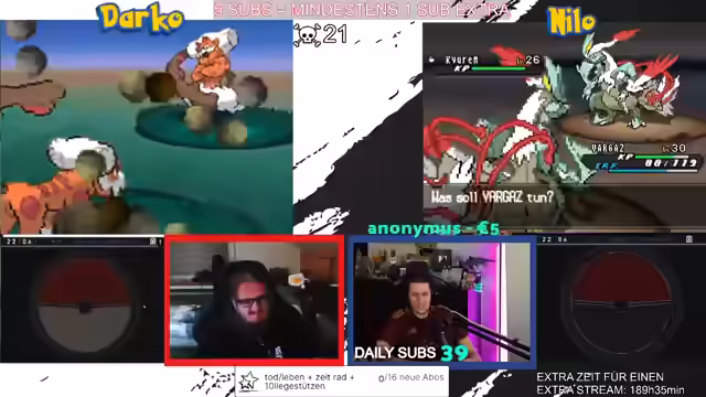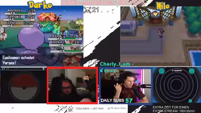 03:07:47Durch das Besiegen von Pokémon, insbesondere Endentwicklungen, wird schnell ein hohes Level erreicht. Kyurem-Begegnungen bringen besonders viele XP. Es wird überlegt, Feuerattacken einzusetzen und Pokémon zu paralysieren. Die aktuelle Situation wird mit einem gebratenen Schwein verglichen, das für ausgehungerte Spieler sehr attraktiv ist. In einer Höhle werden seltene Pokémon gefunden und sofort 'geschlachtet' für XP. Es wird auf fehlende Subs hingewiesen, um ein bestimmtes Ziel zu erreichen. Der Fokus liegt auf dem aktuellen Pokémon-Run, der als besonders erfolgreich angesehen wird. Es wird überlegt, wie man sich weiter verbessern kann, und die aktuellen Pokémon-Teams werden betrachtet. Vargas hat das Pokémon-Virus, das extrem selten ist und die EP-Werte erhöht.