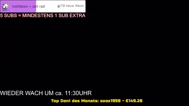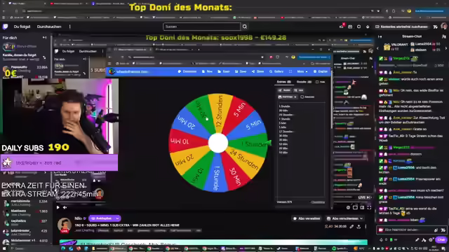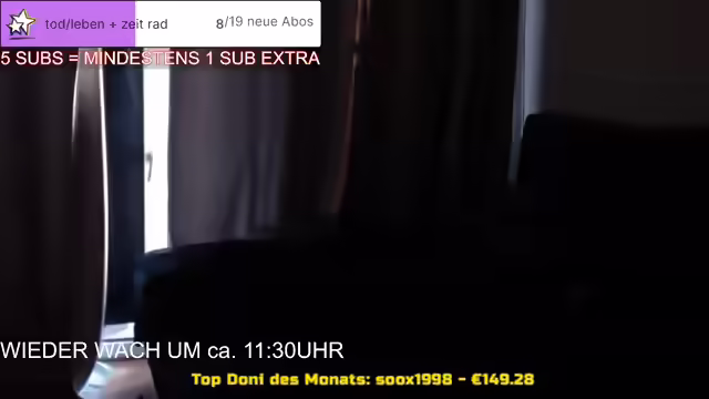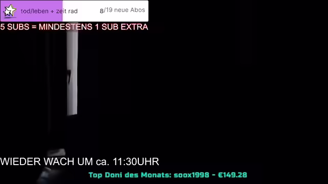 20:50:43Die letzten Stunden des Events laufen, und es wird angekündigt, dass bei über 9 Subs der nächste Dreh ab 11 Subs startet. Der Chat wird auf die Möglichkeit einer Subbombe hingewiesen. Bis 19:00 Uhr läuft das Event, bei dem ab 5 Subs mindestens ein zusätzlicher Sub extra gewonnen werden kann. Es wird sich über Starbos Musik gefreut. Blumi wird für eine 10er Subbombe gedankt. Es wird erwähnt, dass 10 Subs raus sind und es eine 1:6 Chance auf eine dicke Zeit gibt. Der Streamer betont, dass es sich lohnt, den Stream zu supporten, besonders jetzt, da es am meisten bringt. Er bedankt sich bei Luma für die 10 Subbombe mit 4 Subs extra und weist auf die Möglichkeit hin, für einen extra Stream extra Zeit zu investieren und Belebung oder Tod zu bewirken.