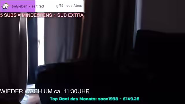 05:33:46Es wird über den Schauspieler Taylor Chase gesprochen, der schwer drogenabhängig und obdachlos sein soll. Es wird überlegt, wie die Kokosnuss genannt werden soll. Es wird darüber gesprochen, dass man Zaya-Arm machen soll. Es wird ein neuer Song gehört, der für Fabian Mecker sein soll. Es wird überlegt, wann man morgen wieder streamen soll. Es wird erwähnt, dass man morgen das Spiel Copycat spielen wird, das sich Axel gewünscht hat. Es wird erwähnt, dass das Spiel eine Playtime von circa 3 Stunden hat. Es wird erwähnt, dass man im Spiel Entscheidungen treffen muss, die Auswirkungen haben. Es wird überlegt, ob man die Alerts über Nacht ausmachen soll. Es wird sich für den September bedankt und auf die Zurücksetzung der Subs und Donations hingewiesen. Es wird erwähnt, dass man von den Top Subgiften und Top Bits immer einen Screenshot macht.