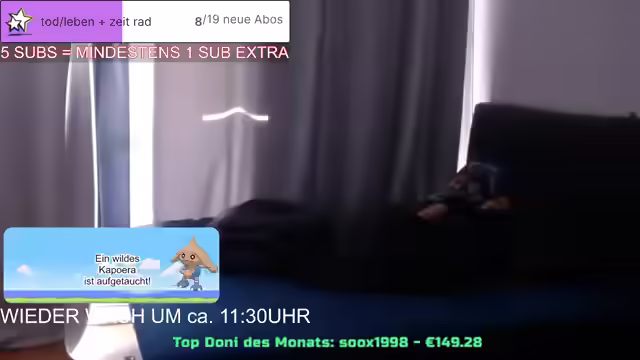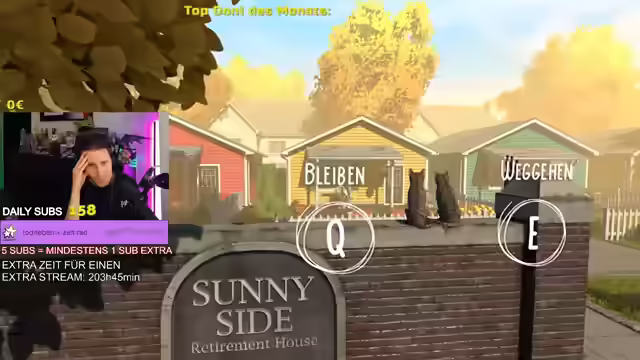 21:01:16Der Streamer kündigt an, dass er noch bis 19 Uhr streamen wird, was noch etwa 3 Stunden sind, und sich danach verabschiedet. Er erklärt, dass er nach dem Stream die Bude aufräumen muss, da sich in den letzten Tagen viel angesammelt hat. Er muss putzen, da David am nächsten Tag kommt. Es wird über ein Fußballspiel von Dortmund diskutiert. Der Streamer liest einen Hinweis zu Copycat vor, der sensible Themen behandelt, und betont, dass man sich Unterstützung suchen soll, wenn man eine schwere Zeit durchmacht. Es wird ein kurzer Ausschnitt aus einem Spiel gezeigt, in dem eine Katze adoptiert wird. Der Streamer kommentiert die Ereignisse im Spiel und äußert Vermutungen über den weiteren Verlauf der Handlung.