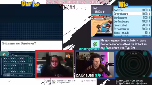 02:19:53Es wird über die Verwöhnung durch Familie gesprochen. Es wird überlegt, bei Darko einzuziehen. Die Freude über den vierten Orden wird ausgedrückt. Es wird sich auf den neuen Herr-der-Ringe-Film gefreut. Es wird überlegt, Copycats zu spielen. Die Entwicklung eines Pokémon wird bemerkt. Es wird überlegt, wie man auf Windows 11 upgraden kann. Es wird ein neues Pokémon gefangen und überlegt, wie es genannt werden soll. Es wird überlegt, wo man in einem bestimmten Gebiet schon etwas gefangen hat. Es wird überlegt, wer ein bestimmtes Pokémon sein will. Es wird ein starkes Pokémon gefangen und sich darüber gefreut. Es wird überlegt, ob man es umbringen soll. Es wird sich über ein starkes Pokémon gefreut und es ins Team aufgenommen. Ein anderes Pokémon wird dafür auf die Bank geschickt. Es wird sich über die Nummer des Pokémon lustig gemacht. Es wird ein neues Pokémon hochgezüchtet.