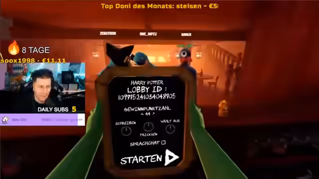 02:48:12Der Stream wechselt zum Spiel Pick Me, bei dem der Streamer ein selbst erstelltes Harry-Potter-Karten-Deck vorstellt. Dieses besteht aus rund 100 Karten, von denen er die meisten selbst ausgewählt hat, wobei Rupsy ihm bei der Ideenfindung geholfen hat. Die Karten werden als Slideshow in das Spiel integriert. Streamer und Teilnehmer versuchen, die Charaktere und Gegenstände aus Harry Potter zu erraten und sammeln dabei Punkte.