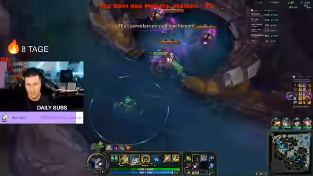 02:40:32Nach technischen Klärungen erwähnt der Streamer Kooperationen und Runden mit Spielern wie Pascal, Vargas, Taktik, Daku und Ripi. Sie spielen eine Runde League of Legends, die sie gemeinsam gewinnen. Der Streamer äußert sich enthusiastisch über einen neuen Champion, den er als extrem stark und überpowert beschreibt, da dieser nur minimale Anstrengungen im Spiel erfordert und dennoch großen Schaden anrichtet.