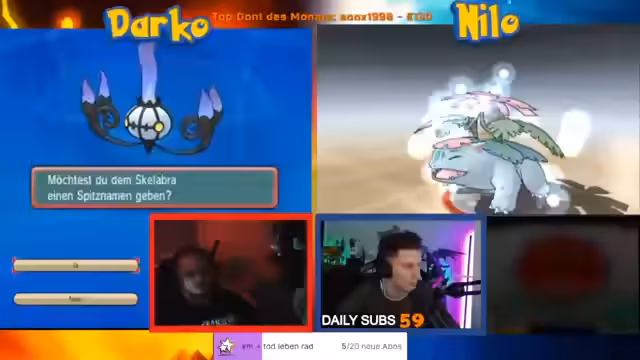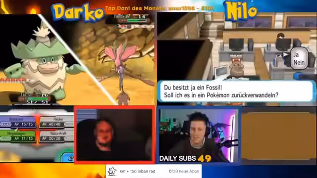 01:44:26Der Streamer beginnt mit einem Pokémon Randomizer Nuzlocke-Spiel, einer Challenge, bei der Pokémon zufällig generiert werden und bestimmte Regeln gelten. Es kommt zu mehreren Toden von Pokémon, was für Frustration unter dem Streamer und der Community sorgt. Die Zuschauer werden aktiv eingebunden, indem sie entscheiden, ob Pokémon belebt oder getötet werden sollen, basierend auf Spenden oder Subs.