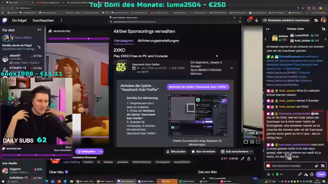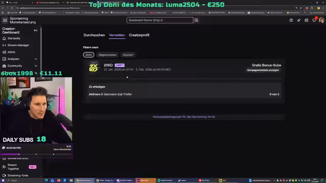 04:34:17Der Streamer sichtet eine Ankündigung zu einer Marketingkampagne, die verlangt, dass er innerhalb eines bestimmten Zeitraums für mindestens drei Stunden mit aktivierten Geschenk-Subtreffern streamt. Die genauen Anforderungen sind jedoch unklar. Es ist nicht spezifiziert, ob die drei Stunden am Stück oder über mehrere Tage verteilt sein müssen. Der Streamer äußert seine Verwirrung und Unsicherheit über die Konsequenzen, falls die Bedingungen nicht erfüllt werden, und bittet um Meinungen im Chat, um seine Entscheidung zu treffen.