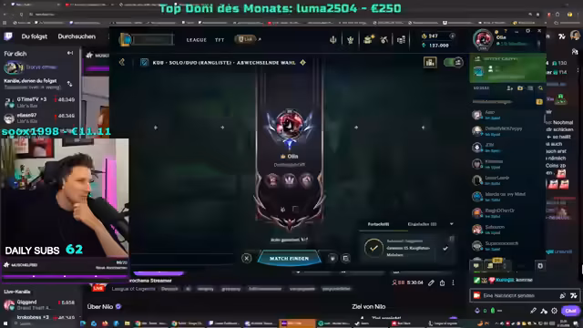 00:20:54nilo räumt ein, ein ehrgeiziger Mensch zu sein, der täglich ein Erfolgserlebnis benötigt, um sich selbst wertvoll zu fühlen. Er setzt seine Streaming-Tätigkeit mit dem einer gleichwertigen Arbeit an und fühlt sich wertlos, wenn die Runden nicht gut laufen. Die Abfolge von toxischen LoL-Runden und gescheiterten Ark-Versuchen hat ihn mental an seine Grenzen gebracht, was ihn nach dem zwölfstündigen Stream dazu brachte, den Stream vorzeitig abzubrechen, um einer 'Irrenanstalt' zu entgehen, wie er es selbst bezeichnet.