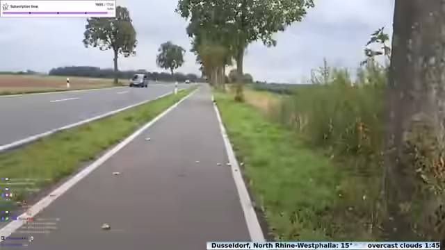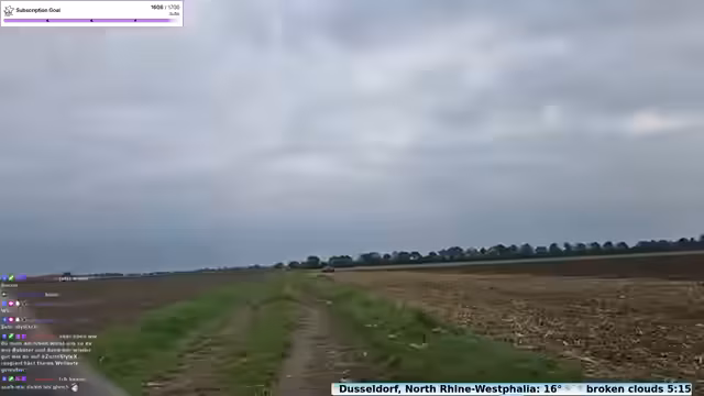 02:06:59Der Streamer verlässt Neuss und nähert sich Köln, wobei die Landschaft ländlicher wird. Er beschreibt die letzten Meilen seiner Wanderung, die trotz Erschöpfung und fortlaufendem Regen mit einer gewissen Zuversicht bewältigt werden. Motiviert durch die positive Resonanz der Zuschauer setzt er seinen Weg fort, mit dem Ausblick, bald in Köln anzukommen und weitere Herausforderungen auf dem Weg zu meistern, während der Stream mit diesem Ausblick endet.