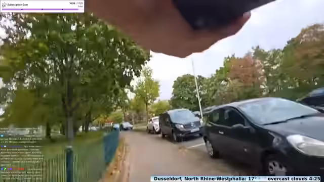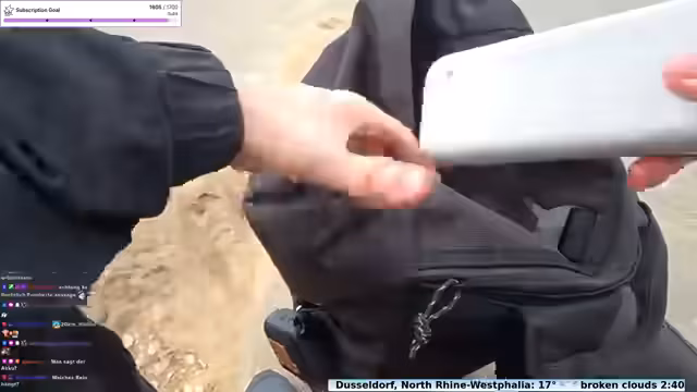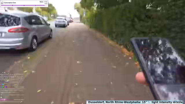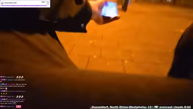 04:14:05In Nievenheim angekommen, sucht der Streamer nach Toiletten, um dringende Bedürfnisse zu befriedigen, und aktualisiert den Akkustand der Powerbank. Er plant eine Pause, um sich kurz auszuruhen, während er über die Route und den Fortschritt informiert. Neben körperlichen Schmerzen in den Beinen und der Schulter spricht er über die Versorgung mit Wasser und Brötchen. Die Ankunft im Dorf wird als logistische Herausforderung beschrieben, mit der Suche nach WLan und der Anpassung der Kamera für bessere Sichtbarkeit, während er interaktiv mit Zuschauern bleibt.