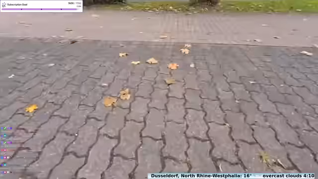 08:20:42Der Streamer bricht zu seinem Marathon von Düsseldorf nach Köln auf, mehr als 42 Kilometer zu Fuß. Er diskutiert mit dem Chat die Distanz und das Gefühl, dass 100.000 Schritte nicht viel erscheinen, während er sich psychisch auf die Herausforderung vorbereitet. Die Stimmung ist aufgeweckt, und er plant, die Runde um den Zielort zu machen, ohne extra zum Kölner Dom zu gehen, da die Route bereits durch Köln führt.