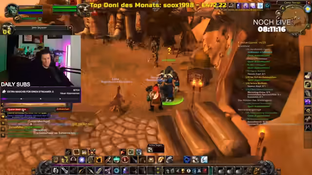02:40:30Es geht um die Quest "Suche die Hülle in der Steinschlag", die als schwierig beschrieben wird. Kristalle, die von Kobolden abgebaut werden, spawnen sehr schnell neu, was das Farmen erleichtert. Der Streamer kauft bessere Heiltränke, die deutlich stärker wirken. Das Management von Ressourcen wie Tränken und die effiziente Erledigung von Questen bleiben zentrale Gameplay-Elemente.