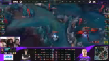02:03:40Trotz des klaren Goldrückstands bleibt die von Freige gespielte Gwen die zentrale Hoffnung für FMS. Ihr Potenzial mit Shadowflame-Rüstung ist immens, während der gegnerische Lucian zwar stark, aber anfällig für Dives erscheint. Der Fokus liegt darauf, Gwen als tragende Kraft zu nutzen, um in einem späteren Teamfight das Spiel drehen zu können.