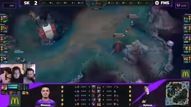 02:10:43Der Nashor spawnt und hat die Kontrolle für SK zur Folge. Nach einem gescheiterten Engage von FMS nutzt SK die Chance, einen Baron-Solo-Kill zu realisieren. Ein entscheidender Fehltritt von FMS führt zum Tod von Samulek. Kidui schaltet im Anschluss die gesamte gegnerische Team aus und bringt SK in eine dominante Position. SK holt sich die Ocean Soul und nutzt dies, um den ersten Satz des Best-of-Five zu gewinnen.