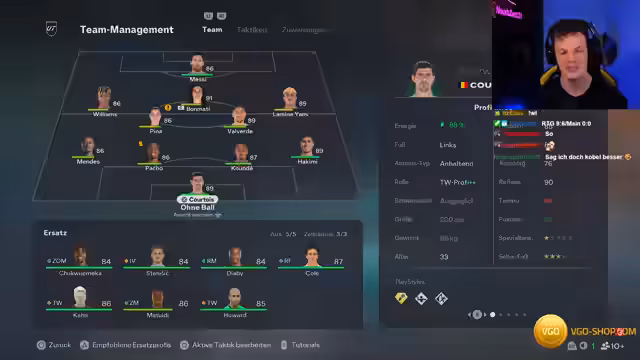 03:02:39Der Streamer bereitet sich auf die Weekend League vor und analysiert sein FIFA-Team. Er überlegt, ob er Williams gegen Raphinha austauschen soll, um das Team zu verbessern, ist sich aber unsicher, ob Raphinha ein Upgrade darstellt. Er diskutiert auch die Möglichkeit, Rüdiger zu spielen und überlegt, Fabian Ruiz in das Team zu holen, da dieser bessere Playstyles hat als Valverde. Trotz der hohen Kosten für Valverde entscheidet er sich, diesen zu verkaufen und Ruiz zu verpflichten, um das Team zu optimieren. Er ist zuversichtlich, dass diese Änderungen das Team stärken werden und geht mit einer positiven Einstellung in die Weekend League, mit der Hoffnung auf einen neuen Rekord von 15 Siegen. Er betont die Wichtigkeit von Konzentration und einer soliden Taktik, um erfolgreich zu sein.