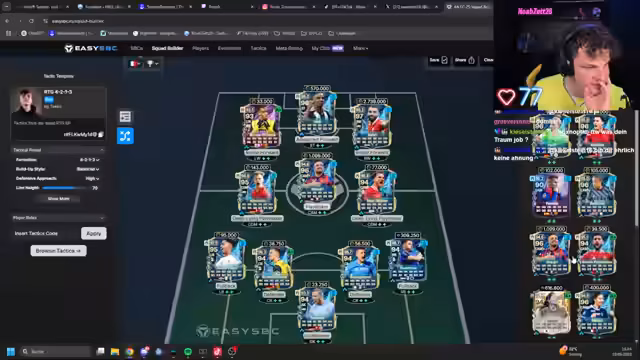 01:09:17Der Streamer konzentriert sich darauf, seine Teamlücken auf dem Transfermarkt zu schließen, insbesondere auf der rechten Außenverteidigerposition. Er verkauft Teile seines Kaders, um Coins zu sparen, und überlegt, welche Spieler er kaufen oder verkaufen soll, um seine Gesamtstärke zu verbessern. Er äußert den Wunsch, einen besseren Spieler auf der linken Seite zu finden, und erwägt, auf den Markt zu schauen, um sich mehr Qualität zu leisten.