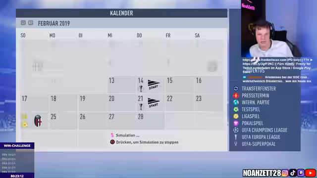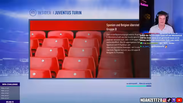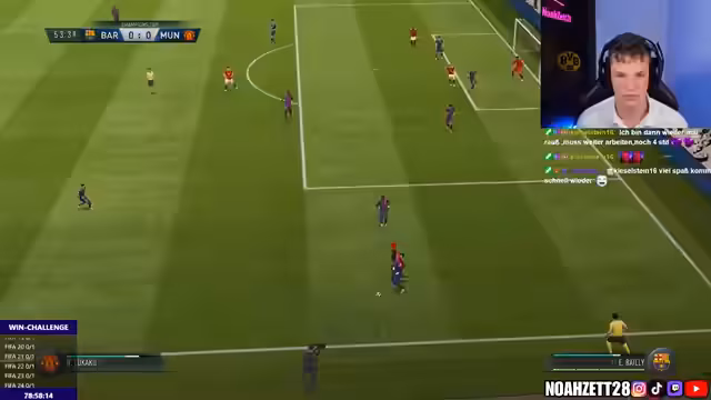 10:14:27Es wird über die Schwierigkeiten der Win Challenge gesprochen und die Tatsache, dass das Team trotz hoher Investitionen und Top-Spielern nicht den gewünschten Erfolg erzielt. Das Champions League Finale 2030 gegen Atletico Madrid steht an. Der Streamer zittert vor Anspannung. Trotz des Pechs in der Saison erreicht Juventus das Finale. Das Spiel findet auf Schalke statt. Es wird über die Aufstellung und Taktik diskutiert, wobei Haaland eine wichtige Rolle spielt. Das Spiel ist intensiv und von vielen Zweikämpfen geprägt. Juventus geht in Führung, aber Atletico gleicht aus. Es kommt zur Verlängerung und schließlich zum Elfmeterschießen. Durch den Sieg im Elfmeterschießen schafft es Juventus ins Finale der Champions League.