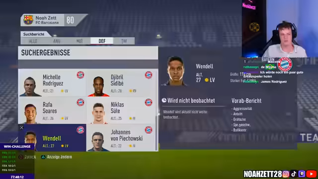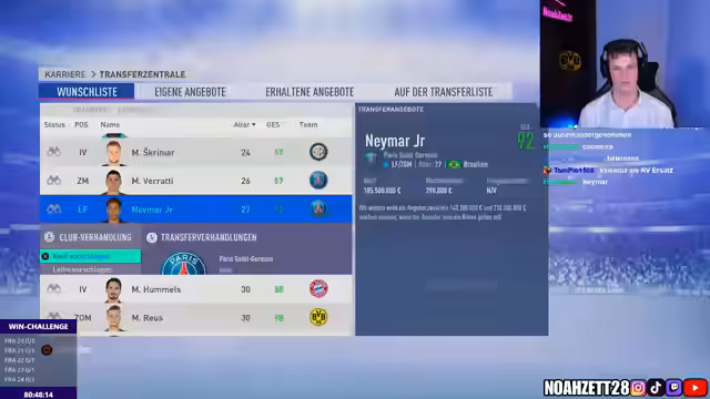 00:18:52Es wird überlegt, welche Spieler verkauft werden sollen, wobei das Alter der Spieler eine wichtige Rolle spielt. Messi, Pogba bleiben im Team. Ronaldo und Ramos sollen verkauft werden. Es wird über die Inaktivität des Streamers gesprochen, die durch Umzug bedingt war. Es werden Prime-Subs erwähnt und erklärt, dass diese genauso viel Geld bringen wie normale Subs. Der Fokus liegt auf der Optimierung des Kaders durch gezielte Transfers. Luis Suarez verlässt den Verein, und es wird überlegt, Holmen Zorn zu verpflichten. Die Nummer 13 im Restaurant wird als Glückszahl genannt. Es wird überlegt, ob man Holmen Zorn verpflichten soll. Es wird überlegt, ob man den Kader verstärken soll. Es wird überlegt, ob man Mbappé verpflichten soll.