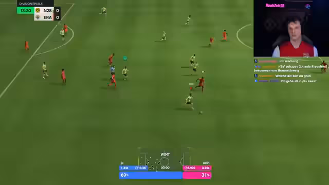 00:40:16Der Streamer beginnt mit dem Gameplay in FIFA, startet Rivals-Spiele und testet sein neu zusammengestelltes Team um Marco Reus und Hummels. Die Spiele von intensiven Emotionen geprägt, mit Ausbrüchen über Schiedsrichterentscheidungen, die Spielführung und das Verhalten der Gegner. Trotz unzähliger Chancen und druckvoller Offensivaktionen gelingt es dem Team zunächst nicht, zu einem Sieg zu finden, was zu Frustration und motivierenden Worten an die Zuschauer führt.
