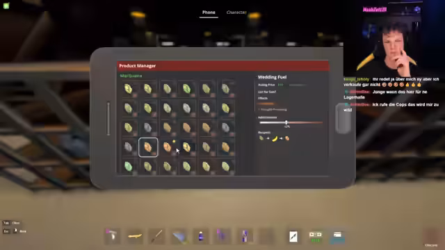 06:05:28Nach der Ernte der Kokainpflanzen beginnen die Streamer mit der Verarbeitung. Sie planen, das getrocknete Material mit verschiedenen Substanzen wie Viagra und Pferdesperma zu vermischen, um ein neues, hochprofitables Produkt zu kreieren. Sie diskutieren intensiv über die genaue Zusammensetzung und benennen das Endprodukt provokant als "Geile Ficksahne". Ziel ist es, durch diese Veredelung den Wert des Kokains zu steigern und es als Premium-Produkt am Markt zu platzieren. Parallel dazu wird die Infrastruktur ausgebaut, um die Produktion effizienter zu gestalten.