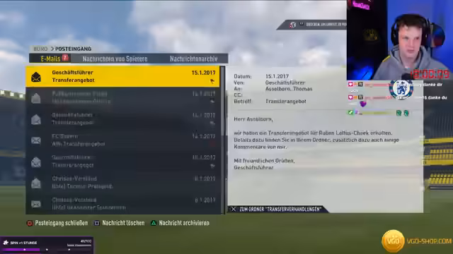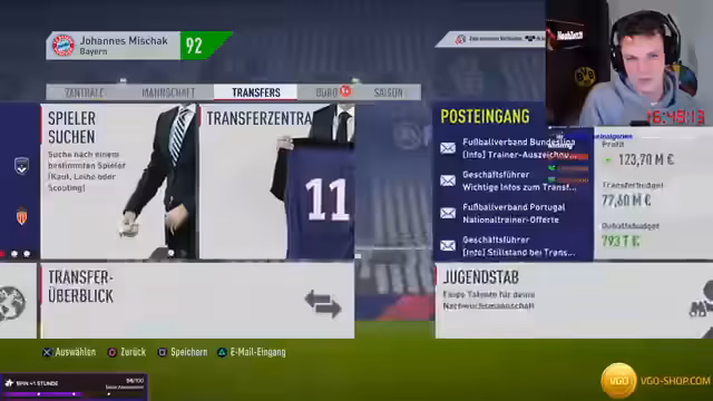 06:07:50Nach dem Titelgewinn wechselt der Streamer zu FIFA 16 und startet eine neue Karriere mit Ajax Amsterdam. Der Kader ist jung und talentreich, die ältesten Spieler sind nur 34 Jahre alt. Der Streamer plant gezielt junge Talente zu verpflichten und durchsimuliert die nächste Saison. Es werden potenzielle Neuzugänge wie Süle und Draxler besprochen und das Ziel ist, die trophäle Saison fortzusetzen.