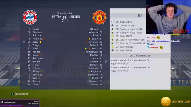 09:42:00Das Highlight des Streams ist das Champions-League-Finale gegen den FC Bayern München. Das Spiel ist intensiv und umkämpft, endet aber nach Verlängerung mit einem klaren Sieg (4:2) für die eigene Mannschaft. Spieler wie Hazard, Bale und Pogba werden als entscheidend für den Erfolg gelobt. Nach dem Titelgewurf muss durch einen Münzwurf entschieden werden, ob der Kader direkt für den nächsten Teil der FIFA-Serie qualifiziert ist.