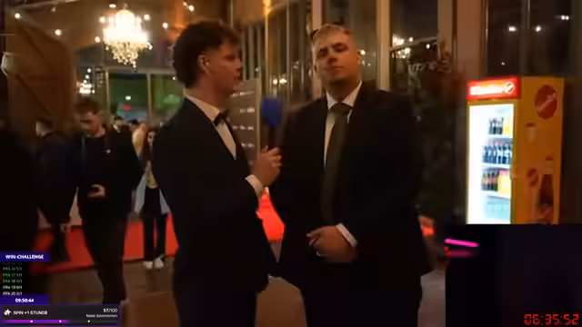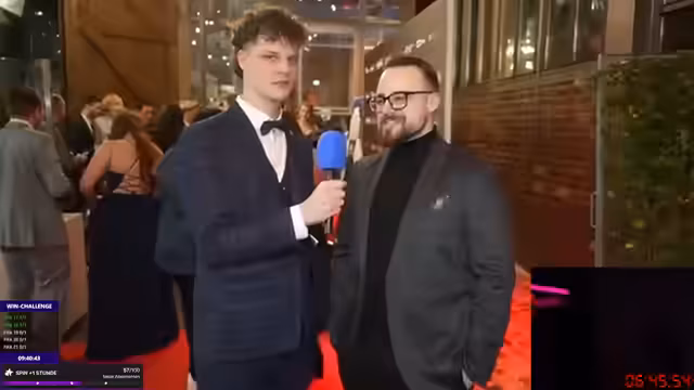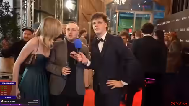 15:02:33Auf dem Event der Stream Awards 2024 unterhält sich der Streamer mit anderen Teilnehmern. Er lobt das Outfit von Alexis und Henke und nennt Henke 'krass' für sein Erscheinen. Er diskutiert die Frage nach dem 'sympathischsten Streamer' und nennt Mitashi und Revi als seine Favoriten. Die Atmosphäre ist locker und es gibt viele positive Interaktionen mit anderen Kreativen.