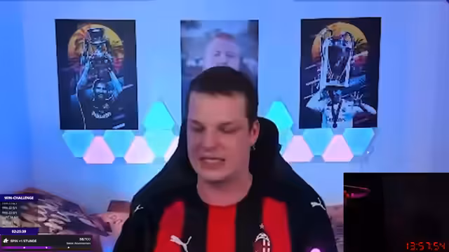 12:13:33Die Teilnahme am Illigella Cup verläuft enttäuschend. Der Streamer verliert alle drei Spiele, oft nach Führung, und führt seine Niederlagen auf das "Loslassen" von Chancen und eigene Fehler zurück. Er äußert massive Frustration, wirft dem Spiel vor, "scheiße" zu sein, und gibt vor, nach der Turnier-Niederlage kein Interesse mehr an FIFA zu haben.