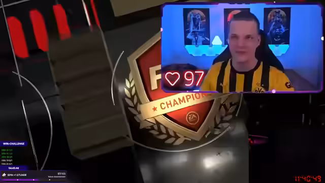19:58:24Der Streamer widmet sich dem Illigella Cup in EA Sports FIFA. Mit seinem Team aus ausgeliehenen Spielern tritt er an und zeigt eine leidenschaftliche, aber emotional aufgeladene Performance. Trotz starker Bemühungen und motivierender Rufe an seine Mitspieler verliert das Team die entscheidenden Spiele. Das endet in Frustration, da der Streamer den Verlust auf seine eigenen Fehler schiebt und seine Mannschaft am Ende 'abstößt'.