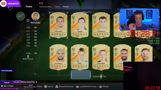 16:12:02Nach 18 Stunden Grinding ist das RTG-Team soweit fortgeschritten, dass es in Division 6 spielt. Der Streamer präsentiert das Ergebnis seines 24-Stunden-Projekts. Ohne einen Cent investiert zu haben, hat er ein starkes Team zusammengestellt, mehrere Walkout-Spieler gezogen und ist mit dem Account in eine höhere Division aufgestiegen. Er beweist, dass auch ohne Geld ein sehr gutes FIFA-Team möglich ist.