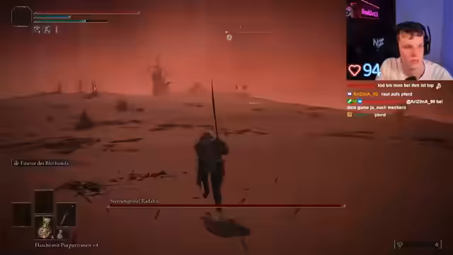 00:13:46Der Streamer beginnt mit Elden Ring, nachdem er PC-Probleme am Vortag hatte. Er ist gespannt auf die nächsten Monate und wird das Spiel nicht brechen lassen. Er steht vor einem Endboss, den er als 'zorniges Mistvieh' bezeichnet und den er gestern nicht besiegen konnte. Er versucht, den Boss zu besiegen, hat aber Schwierigkeiten, da er immer wieder besiegt wird. Der Streamer ist frustriert über die Schwierigkeit des Spiels.