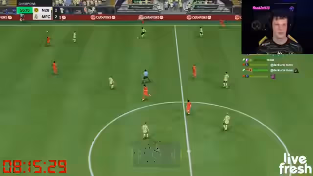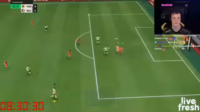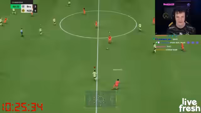 04:04:17Die FIFA-Simulation ist von intensiven und frustrierenden Momenten geprägt. Der Streamer kommentiert das Spielgeschehen mit hohem emotionalen Einsatz, kritisiert häufige Fehlentscheidungen des Gegners, eigene Taktikfehler und das Gameplay selbst. Themen wie Misserfolge, verpasste Chancen, rote Karten und die allgemeine Frustration über das EA-Spiel werden wiederholt angesprochen, was zu einem ausgelasteten und aufgebrachten Kommentator führt.