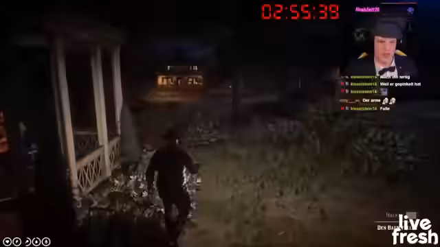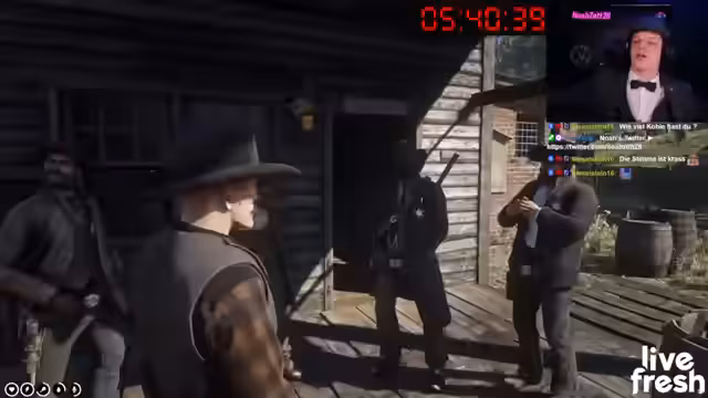 08:57:36Die Situation mit dem Landstreicher Jenkins eskaliert, als dieser sich unterhält, aber stark nach Alkohol und Ungeziefer stinkt. Der Streamer, als Sheriff, versucht, Ordnung zu wahren, indem er Jenkins zum Verlassen der Örtlichkeit auffordert. Als dieser sich weigert, kommt es zu körperlichen Auseinandersetzungen und beleidigendem Austausch. Schließlich wird Jenkins gezwungen, aus dem Saloon zu verschwinden, um die öffentliche Ordnung wiederherzustellen.