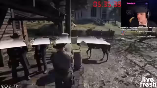 05:52:34Vor dem Einstieg in das Red Dead RP wird kurz eine Partnerschaft mit Profi-Patch beworben, die einen 10% Rabatt mit einem Gutschein verspricht. Anschließend startet der Streamer in die Rolle des Charakters Harald Shelby. Das Ziel ist es, in der Stadt Valentine die Position des Sheriffs zu übernehmen, indem man zunächst mit den lokalen Autoritäten wie Mr. Remedy und Mr. Wheeler interagiert und sich für den Posten bewirbt.