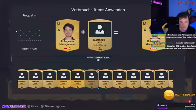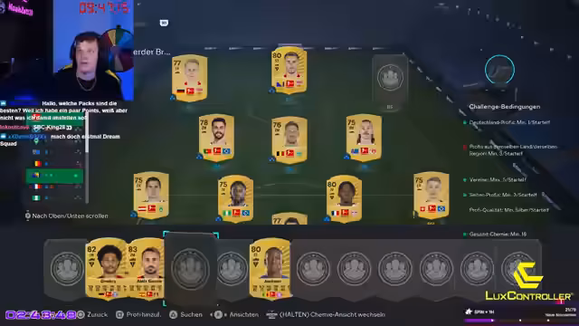 06:22:30Der Streamer konzentriert sich auf das Erledigen verschiedener Challenges, insbesondere um den Yashin-Keeper zu bekommen. Er analysiert sein Team und diskutiert über Spielerauswahl und Taktik. Gleichzeitig beschäftigt er sich mit der aktuellen FIFA-Situation, der Entwicklung des Spiels und den Auswirkungen von EA Sports. Er ist besorgt über die Zukunft des Spiels und macht sich Sorgen über mögliche Negativeffekte durch die neuen Eigentümer.