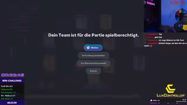 09:41:00Nach Abschluss des Team-Baus absolviert der Streamer sein erstes Rivals-Spiel mit dem neu aufgebauten Team. Das Team im 3-18er-Format wird als solide Basis bewertt, besonders die Außenverteidiger, Sechser und Innenverteidigung überzeugen. Das Spiel gegen einen Gegner endet mit einem hohen Ergebnis, wobei Choco als Spieler des Spiels gefeiert wird. Der Streamer zeigt sich zufrieden mit dem Teamaufbau, betont aber den Bedarf an weiteren Verbesserungen für die WL-Qualifikation.