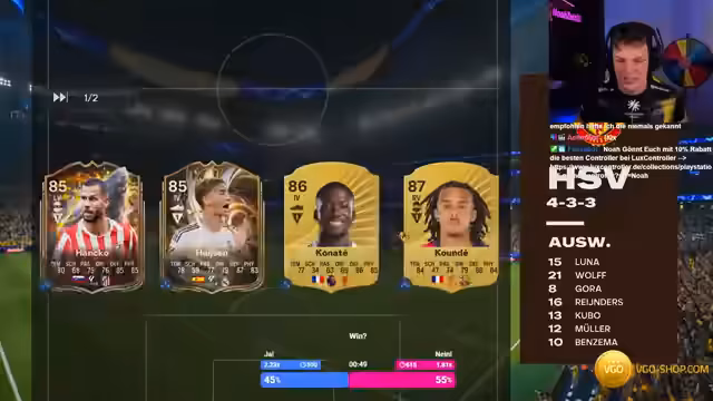 00:17:34Der Streamer hat Schwierigkeiten, eine SBC (Squad Building Challenge) zu lösen, da er nicht sicher ist, ob sich der Einsatz bestimmter Spieler lohnt. Er diskutiert über den Wert von Spielern wie Van Dijk und Saliba und vergleicht deren Leistung im aktuellen FIFA mit dem Vorjahr. Er überlegt, ob er Dumbia für die SBC abgeben soll, obwohl er ihn gerne spielen würde. Letztendlich gelingt es ihm, die SBC mit einem Budget von 80k zu vervollständigen, indem er günstige 86er- und 85er-Spieler erwirbt. Er erwähnt auch die Wichtigkeit von Spielern wie Kobel für Dortmund und lobt dessen Leistungen. Nach dem Abschluss der SBC öffnet er ein Hero Pack, das maximal einen 88er-Hero enthalten kann. Er hat bereits mehrere Hero Packs geöffnet und dabei Spieler wie Bar P, Hansen, Rüdiger, Van Dijk, Dumbia und Snyder gezogen, was er als "brutal" bezeichnet. Er diskutiert die Aufstellung seines Teams und überlegt, ob Allo We Are One oder Dumbia im Sturm besser ist und wie er seine Flügelspieler am besten einsetzt. Er entscheidet sich für eine 4-4-2-Formation, die er bisher in diesem Jahr noch nicht viel gespielt hat, und hofft, dass sie erfolgreich sein wird.