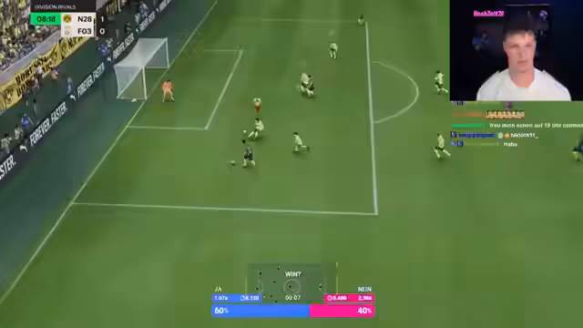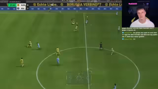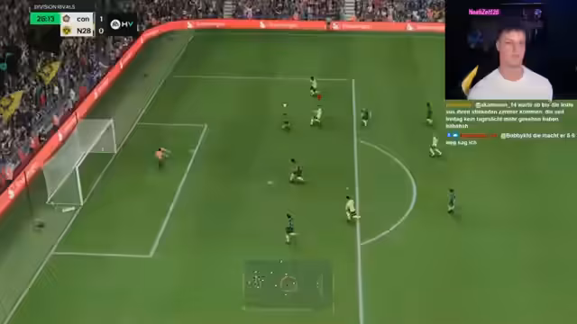 05:36:53Der Streamer spielt nun mit seinem zusammengestellten Team und testet verschiedene Taktiken. Er bezeichnet seine "Bunkertaktik" als extrem effektiv und erfolgreich, da sie defensiv stabil ist und zu Kontern führt. Die Spiele sind emotional und intensiv, gekennzeichnet von frustrationsgeladenen Kommentaren über den Gegner, oft als "süchtig" oder "Spinnt" beschrieben, sowie über Ungereimtheiten im Spielverlauf, wie Schiedsrichterentscheidungen. Der Fokus liegt auf dem Erreichen von Division 2, wobei ein Spiel trotz starker Leistung nur unentschieden endet.