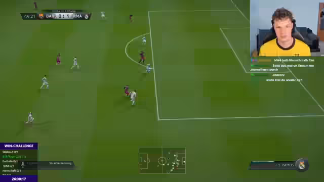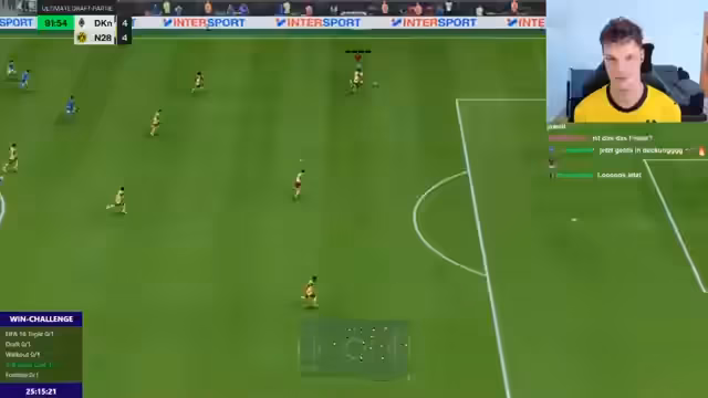 00:23:24Aufgrund der sich abzeichnenden Probleme entschließt sich der Streamer zu einer taktischen Umstellung. Er versucht, das Spiel durch andere Formationen und Spielzüge zu kontrollieren. Die Konzentration liegt nun darauf, eigene Fehler zu minimieren und defensiv stabiler zu agieren. Trotz dieser Anstrengungen gerät das Team in Rückstand und der Druck steigt. Das Erreichen des Finales erscheint zunehmend unrealistisch, was den Streamer emotional stark beansprucht und zu Fehlern auf dem virtuellen Feld führt.