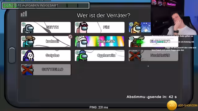 02:40:39Während der Runde in Among Us herrscht große Verwirrung. Der Streamer beobachtet verdächtige Aktivitäten in Elektro und Security, kann aber den Imposter nicht eindeutisch identifizieren. In der anschließenden Abstimmung wirft er einen Mitspieler vor, zu voreilig gewesen zu sein und durch seine verdächtige Bewegung den falschen verdächtigt zu haben. Die Runde endet mit einem unglücklichen Imposter-Verlust, der auf fehlender Teamkommunikation und strategischem Fehlverhalten zurückgeführt wird.