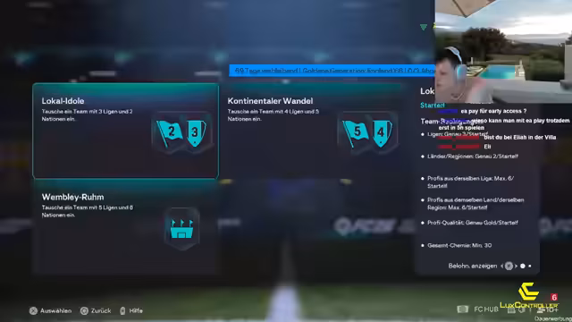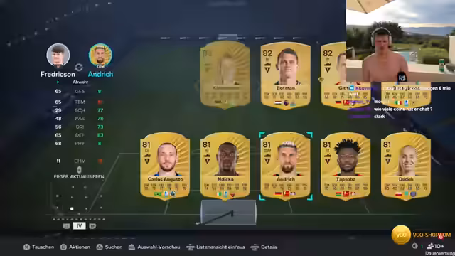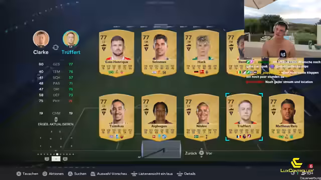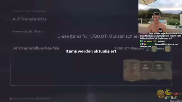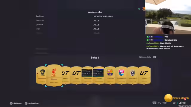 00:00:18Der Stream beginnt spontan aus Kreta. Es wird ein Pack-Experiment mit 150 Euro FIFA-Points gestartet. Der Streamer notiert genau, welche Spieler und Items er aus den 7,5-K-Packs zieht, um den Marktwert zu analysieren. Die ersten Züge sind jedoch noch keine großen Namen. Gleichzeitig werden die Partner VGO und Lux-Controller vorgestellt, wobei die PSN-Karten von VGO für das Aufladen der Points genutzt werden.