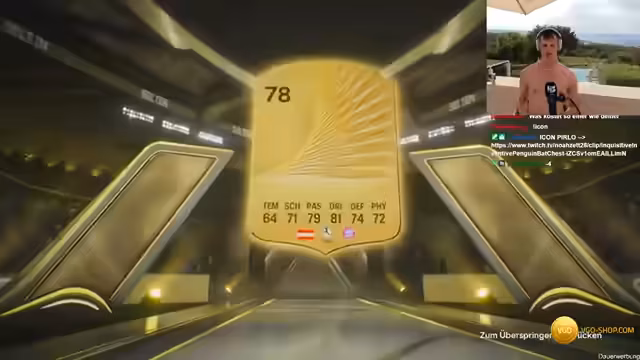 01:06:43Rafael Jao eröffnet den Stream halbnackt am Pool in Kreta und präsentiert ein Pack Opening. Es werden die besten Packs im deutschen Twitch versprochen. Innerhalb der ersten 20 Euro wird der Icon Pirlo gezogen, was als ungewöhnlich guter Start gilt. Der Streamer bewertet seine Investition von 150 Euro für Pirlo als angemessen, da andere Spieler wesentlich mehr Geld investieren würden.